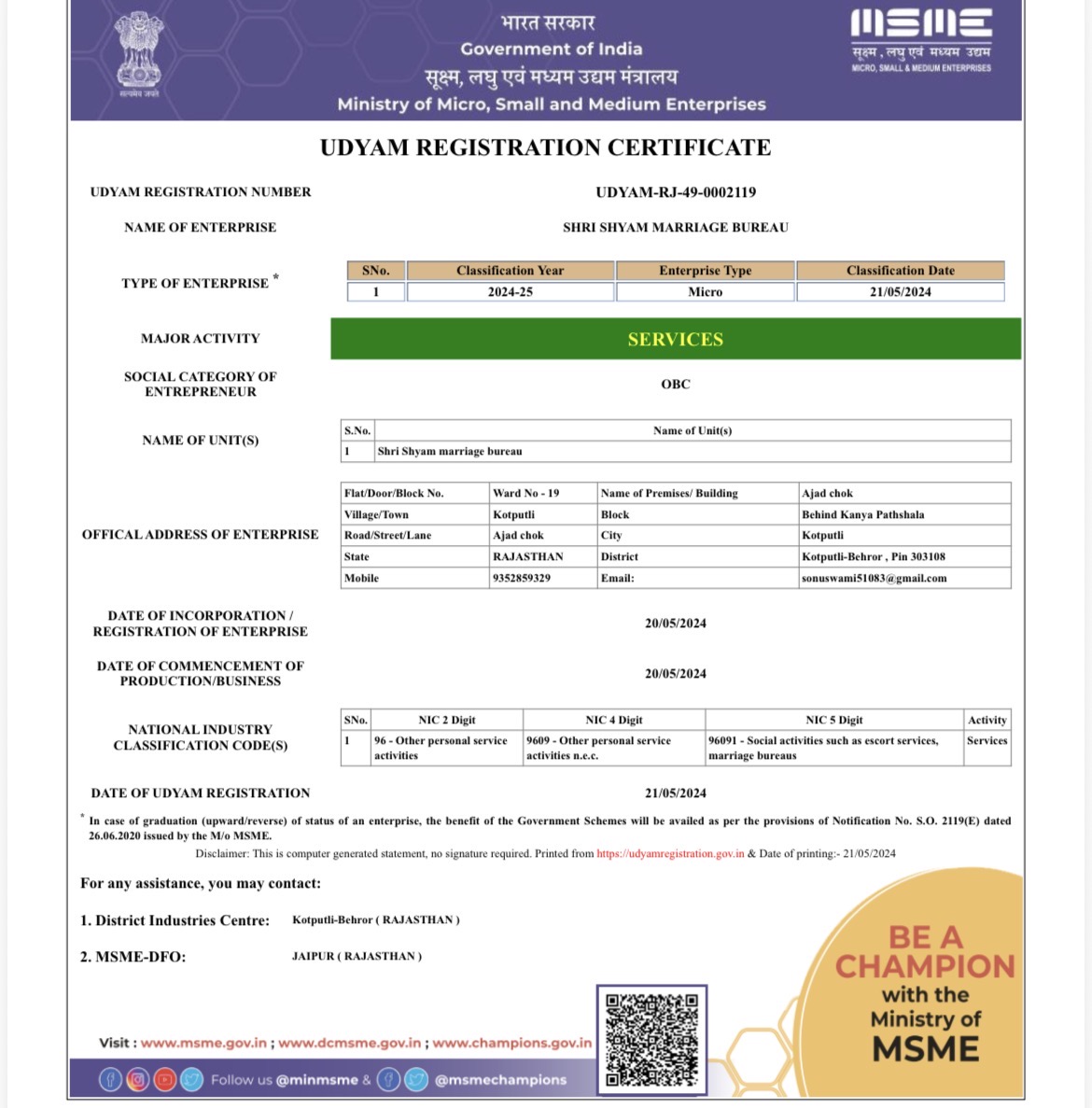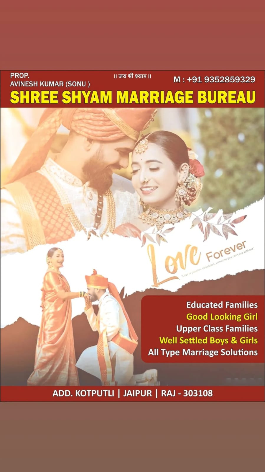 Shree Shyam Marriage Bureau, we specialize in connecting educated, well-settled, and compatible families. Our personalized approach ensures meaningful alliances, bringing together the right hearts for lifelong happiness, trust, and love.
